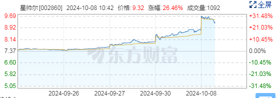 截至10月8日发稿,星帅尔报价9.32元/股,涨幅5.79%。