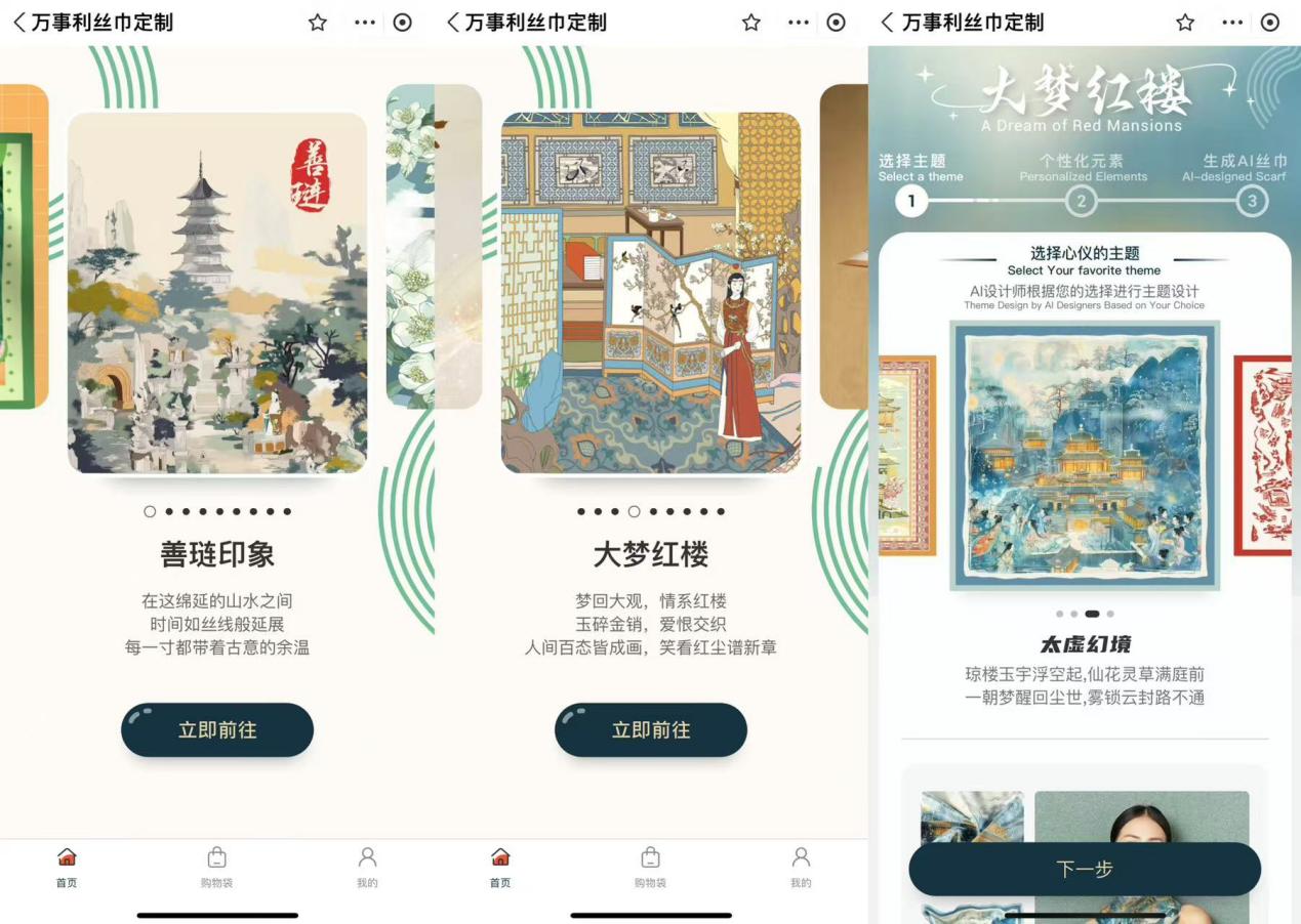 目前,该小程序仍在运营中,大梦红楼、何以敦煌、杭城记忆、遇丽水遇自己等多个充斥着中国风的丝巾定制主题已上线。