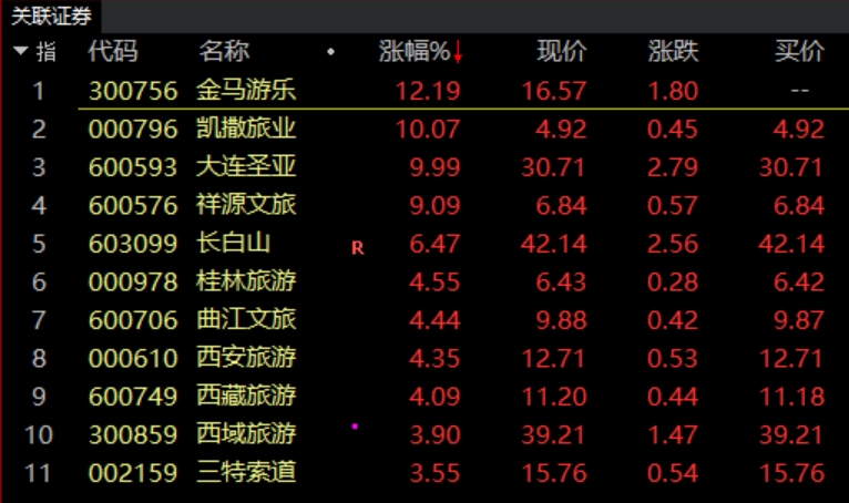 11月25日,a股旅游及酒店板块盘初走强,板块下多股飘红。其中,凯撒旅业、南京商旅、大连圣亚涨停,祥源文旅上涨9.09%,长白山、桂林旅游、曲江文旅、西藏旅游、君亭酒店等多股跟涨。近5个交易日内,旅游及酒店概念累计上涨2.42%。