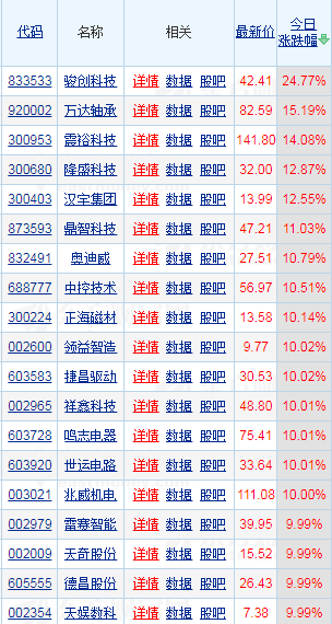 截至2月6日收盘,鸣志电器、兆威机电、天奇股份、祥鑫科技等多股涨停,震裕科技、五洲新春等涨幅靠前。