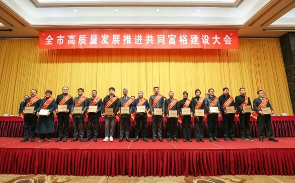 与此同时,在同日召开的嵊州市高质量发展推进共同富裕建设大会上,集团子公司富立钢管荣获“富乐嵊州建设贡献奖工业企业30强”。