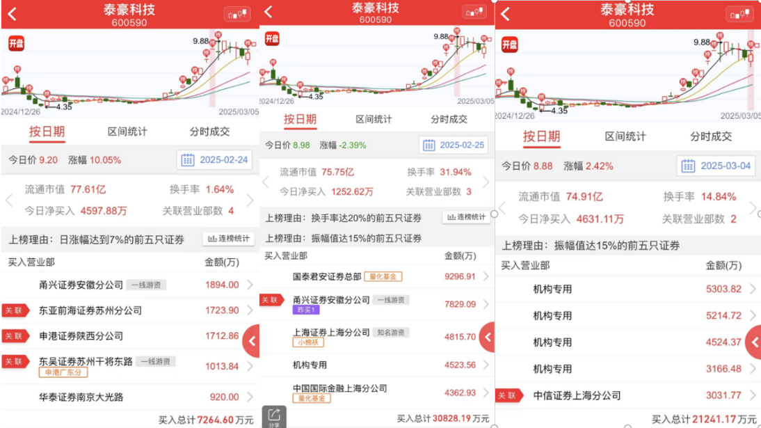 在这一波拉升中,机构、游资等多路资金均现身该股龙虎榜。数据显示,包括上海武定路、小棉袄等在内的游资,以及机构资金均先后买入了泰豪科技的股票,体现出资金对其未来发展的看好。
