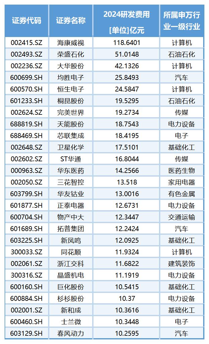 海康威视“荣耀王者”,11家公司研发费用去年同比增长超过100%
