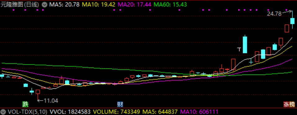 ip经济爆发下,元隆雅图迎来11天7板。