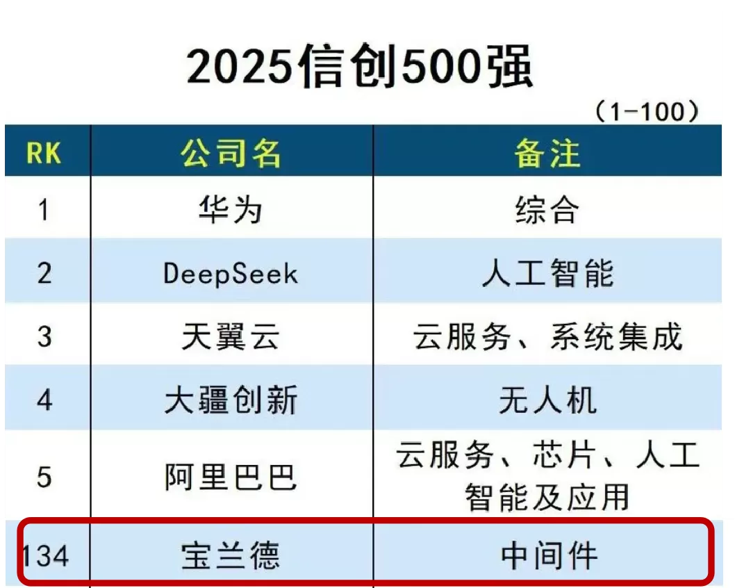 2025年榜单的评选正值信创产业从“可用”向“好用”质变的关键节点——政策层面强调“全栈自主可控”,要求从芯片到应用软件实现底层技术互通;市场层面,党政、金融、能源等关键领域加速推进核心业务系统信创改造,对产品的性能、安全性及生态兼容性提出更高要求。在此背景下,宝兰德连续多年登榜,成为行业技术突破与规模化落地的标杆。