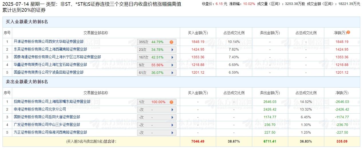 7月14日,汇通集团因非st、*st和s证券连续三个交易日内收盘价格涨幅偏离值累计达到20%登上龙虎榜。
