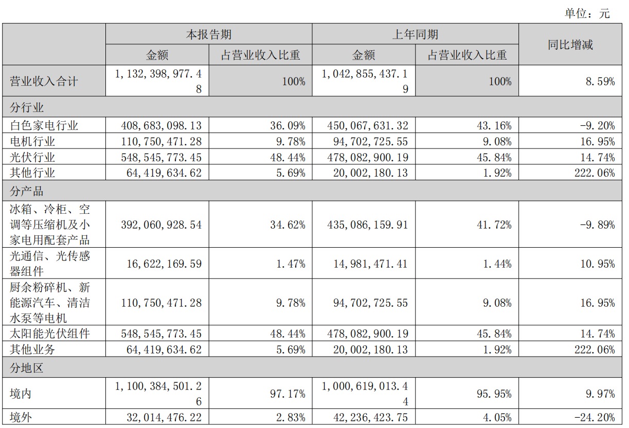上半年,星帅尔光伏业务实现营收5.49亿元,占营收比重48.44%,同比增长14.74%,是公司第一大收入来源。