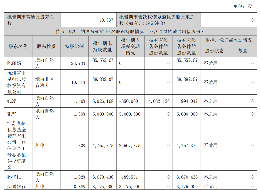 半年报显示,江苏兆信私募基金管理有限公司一兆信集合1号私募证券投资基金持股比例1.33%,报告期末持股数量4,767,375股,报告期内增持2,567,375股。