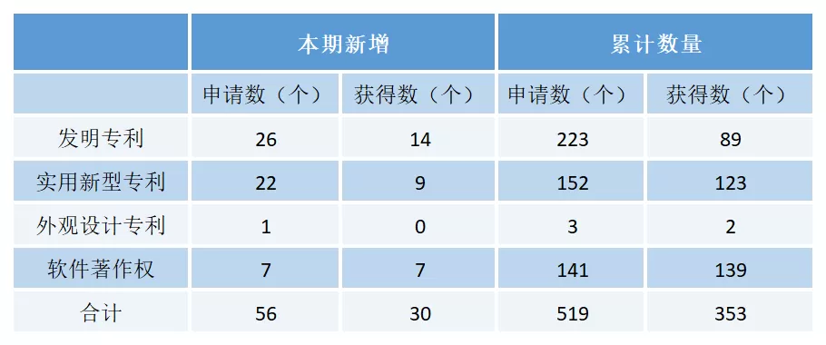 截至上半年末,公司累计获得专利214项,其中发明专利89项,累计获得软件著作权139项。
