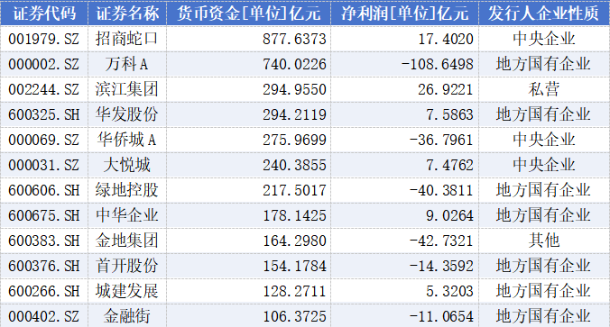 在手货币资金在100亿-999亿元之间的为第二梯队。