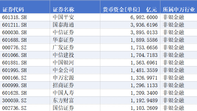 根据同花顺数据,截至今年上半年,在手货币资金超过100亿元的企业有232家。其中,东方证券金额最多达966.96亿元;新兴铸管最少为100.23亿元。