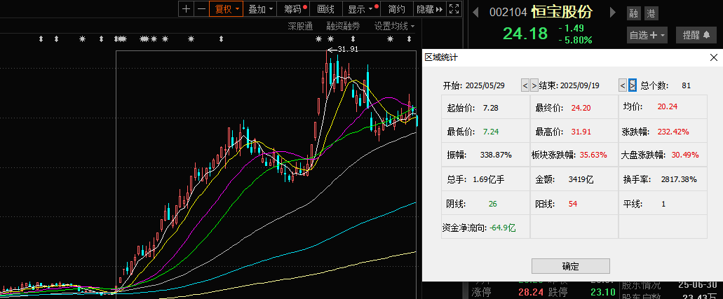 从行情走势来看,5月底开始,恒宝股份股价开始猛涨,截至9月18日的累计涨幅达232.42%,换手率为2817.38%。