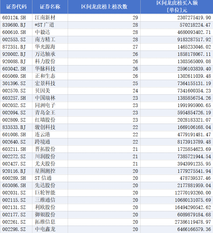 从龙虎榜上榜次数来看,多家公司频繁上榜,显示出资金的高度关注。