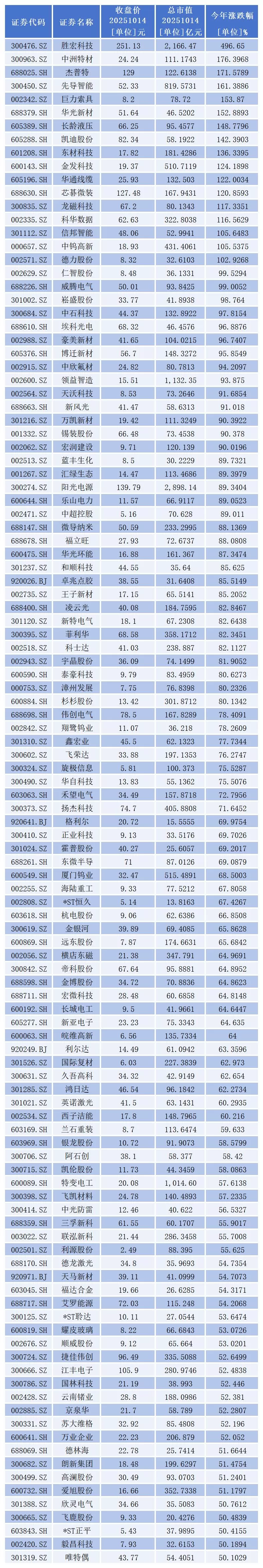 从二级市场表现看,今年以来,429家上市公司股价出现上涨,其中,胜宏科技(300476.sz)、中洲特材(300963.sz)、杰普特(688025.sh)、先导智能(300450.sz)、巨力索具(002342.sz)、华光新材(688379.sh)、长龄液压(605389.sh)、凯迪股份(605288.sh)、东材科技(601208.sh)、金发科技(600143.sh)、华通线缆(605196.sh)、芯碁微装(688630.sh)、龙磁科技(300835.sz)、科华数据(002335.sz)、信邦智能(301112.sz)、中钨高新(000657.sz)、德力股份(002571.sz)17家上市公司股价成功实现翻倍。