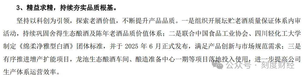 产能端的布局同样为长期增长奠基。增产扩能项目中12个子项目已投产,龙池生态酿造园新增2352口窖池后年产基酒达8400吨,黄金谷制曲中心二期实现全流程自动化(年制曲5万吨),预计2030年项目全面完工后,将新增年产原酒6万吨、储能34万吨,届时单位生产成本有望下降15%-20%,进一步拉开与中小酒企的成本差距。