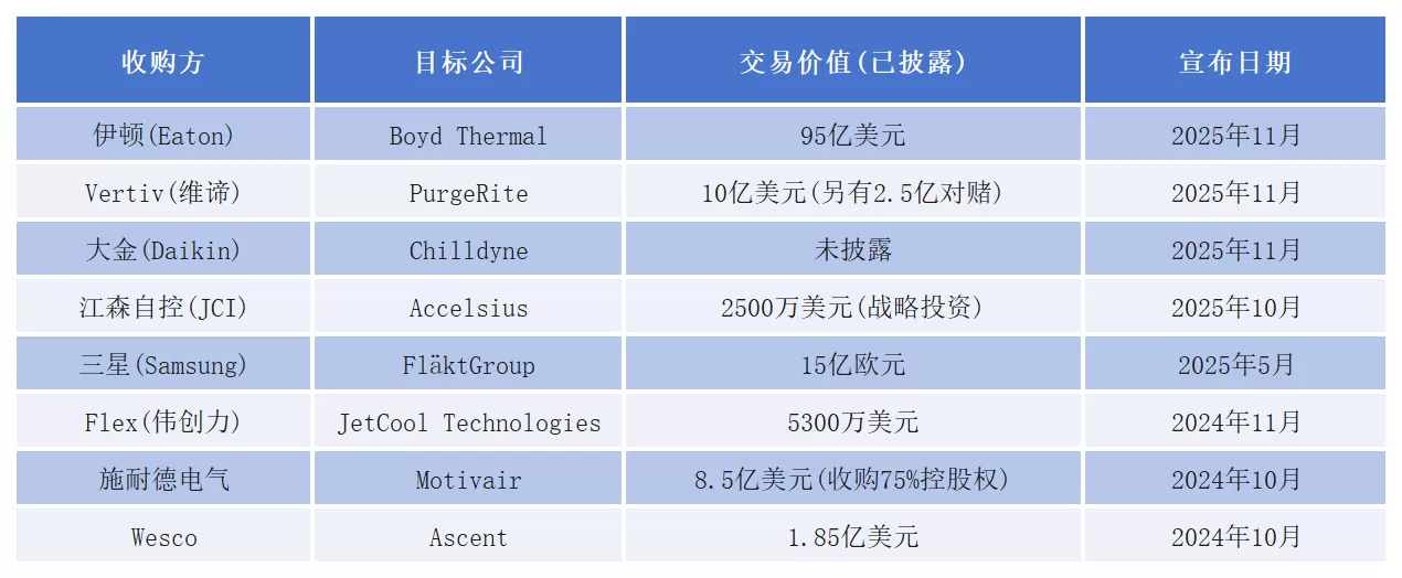 事实上,近一年来,全球液冷领域并购案不断涌现。包括伊顿、施耐德电气、vertiv、三星等在内的传统工业霸主,相继斥巨资并购液冷技术,以捍卫其在数据中心未来市场中的核心地位。