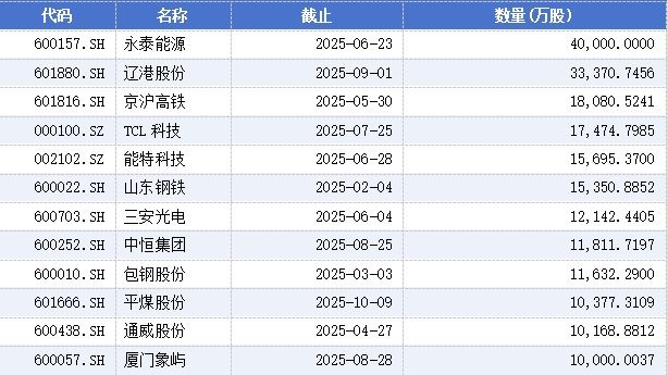 从已完成股份回购的企业回购数量来看,永泰能源、辽港股份、京沪高铁、tcl科技、能特科技、山东钢铁、三安光电、中恒集团、包钢股份、平煤股份、通威股份、厦门象屿累计回购数量较多,均超1亿股。