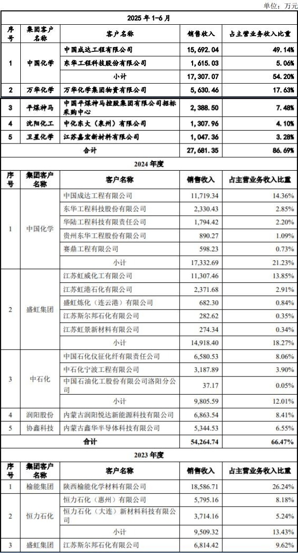 前五大客户:2022年-2025年6月末,报告期内,按同一控制下合并统计,公司向前五名客户的销售收入占主营业务收入比重分别为85.36%、67.32%、66.47%与86.69%,公司不存在对单一客户过度依赖的情况。