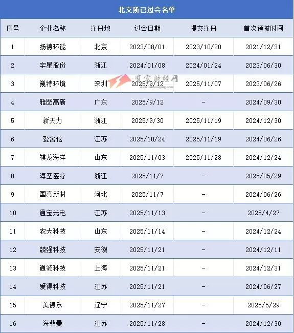 览富财经网讯:11月24日证监会核发1家北交所企业ipo批文:江天科技(过会时间:2025-10-31),11月27日证监会核发1家北交所企业ipo批文:科马材料(过会时间:2025-08-11),截止2025年11月28日北交所过会未拿文企业共16家,6家企业已提交注册,10家企业未提交注册。