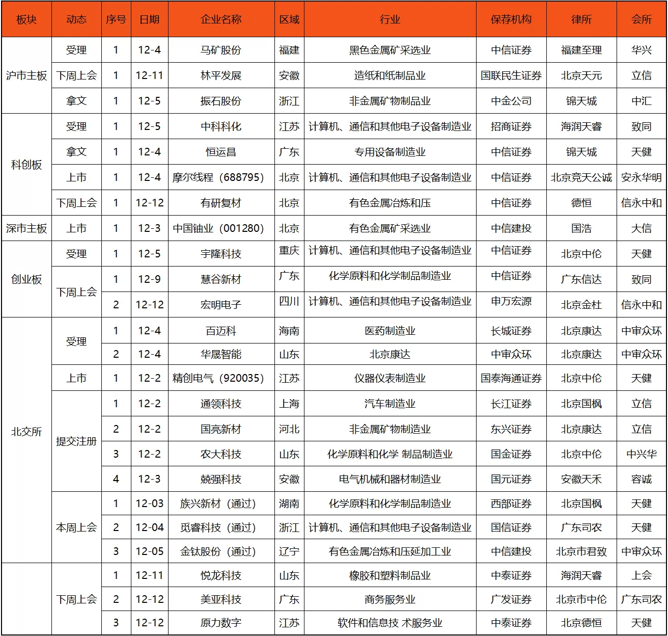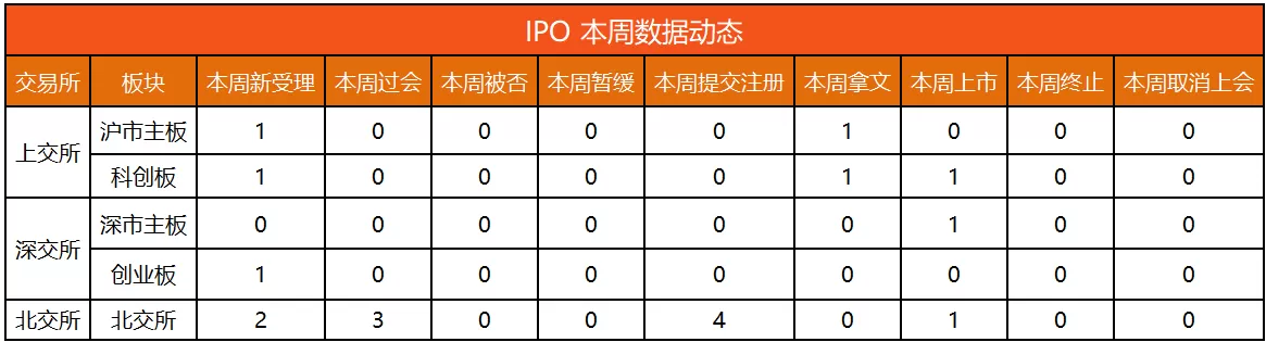 览富财经网统计,12月1日-12月7日,5家企业受理、3家企业首发上会获通过,4家企业提交注册、2家企业顺利拿到批文、3家企业上市,下周上会企业7家。