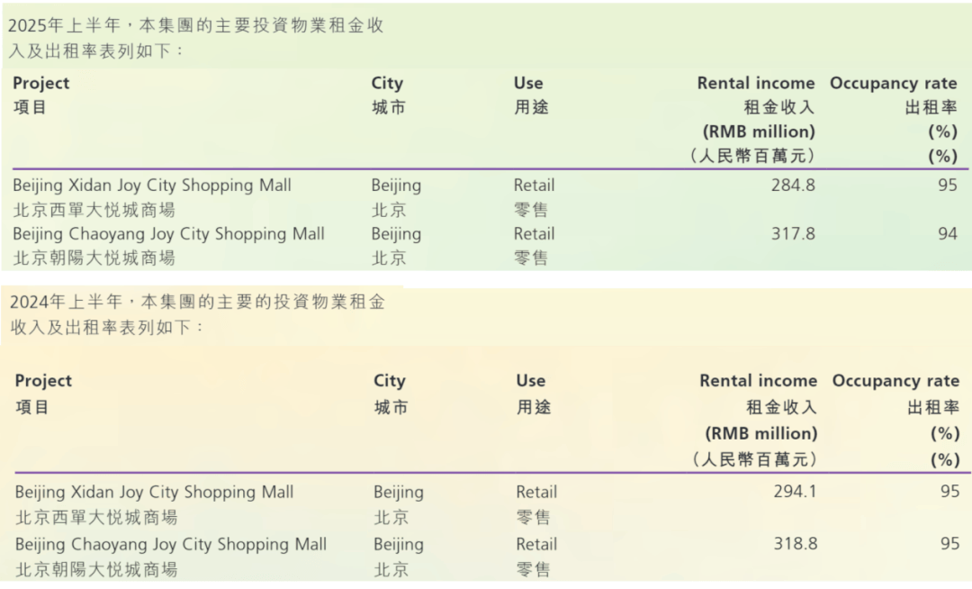 与之相比,截止2025年中期末,同为央企的华润置地在营购物中心达到94座,出租率达到97.3%,明显高于大悦城购物中心的表现。