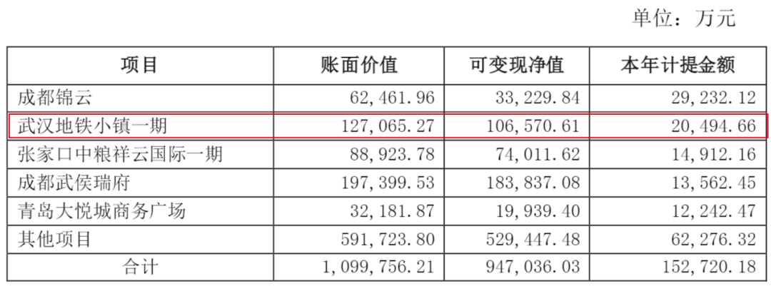 而武汉地铁小镇一期,就是侵蚀大悦城利润的典型项目之一。据「子弹财经」不完全统计,2022年,大悦城对武汉地铁小镇一期计提资产减值2.05亿元;2024年,又对其计提了近3亿元减值。