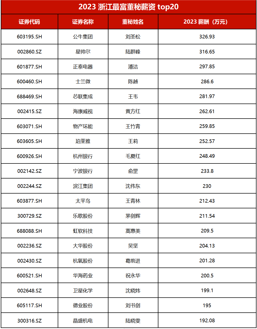 备受关注的2023年浙江董秘薪资榜新鲜出炉,收入最高的董秘年薪超过300万,最低的只有15万元。